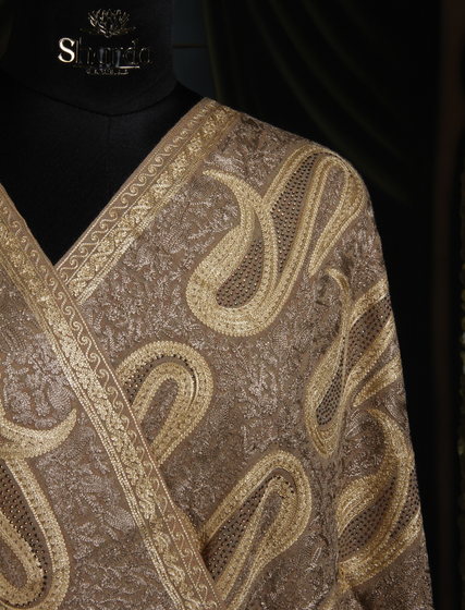 An elegant piece of ari embroidery, enhanced with swarovskis to give the piece a modern and contemporary look.